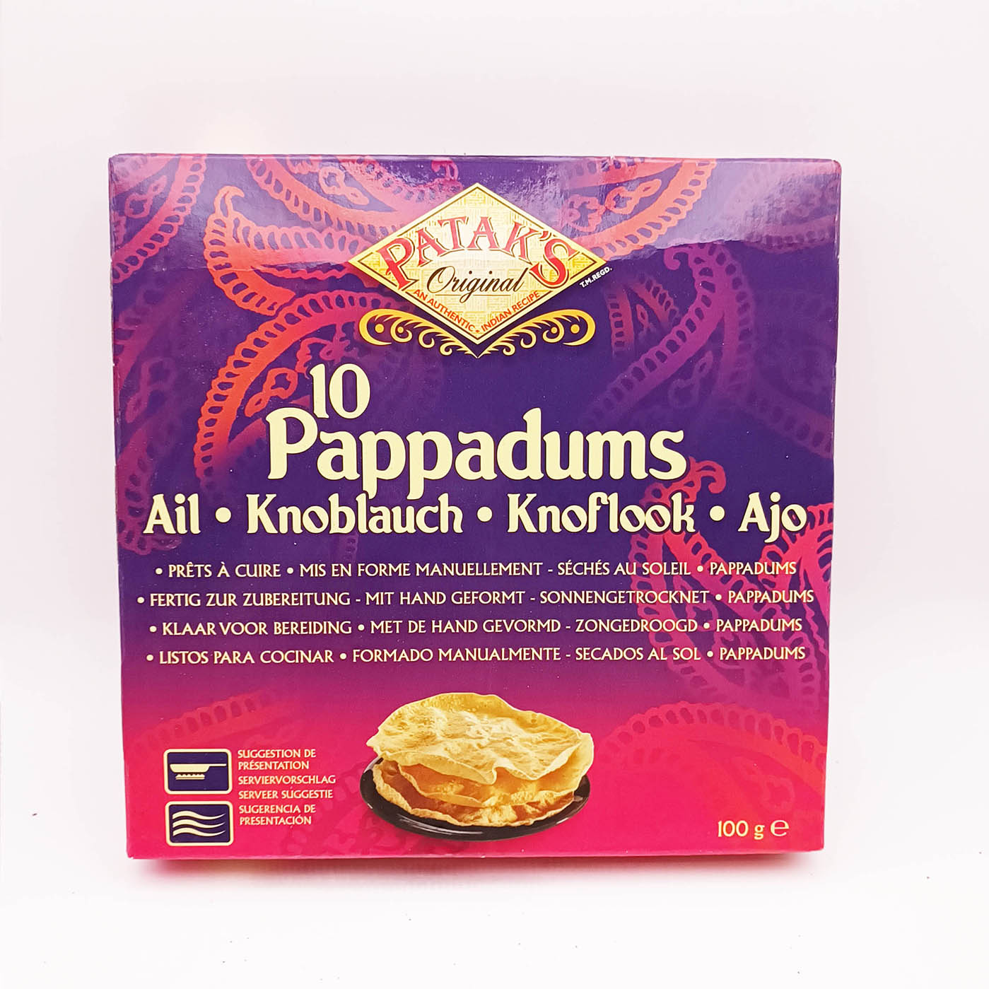 Pappadums garlic PATAKS box 100g